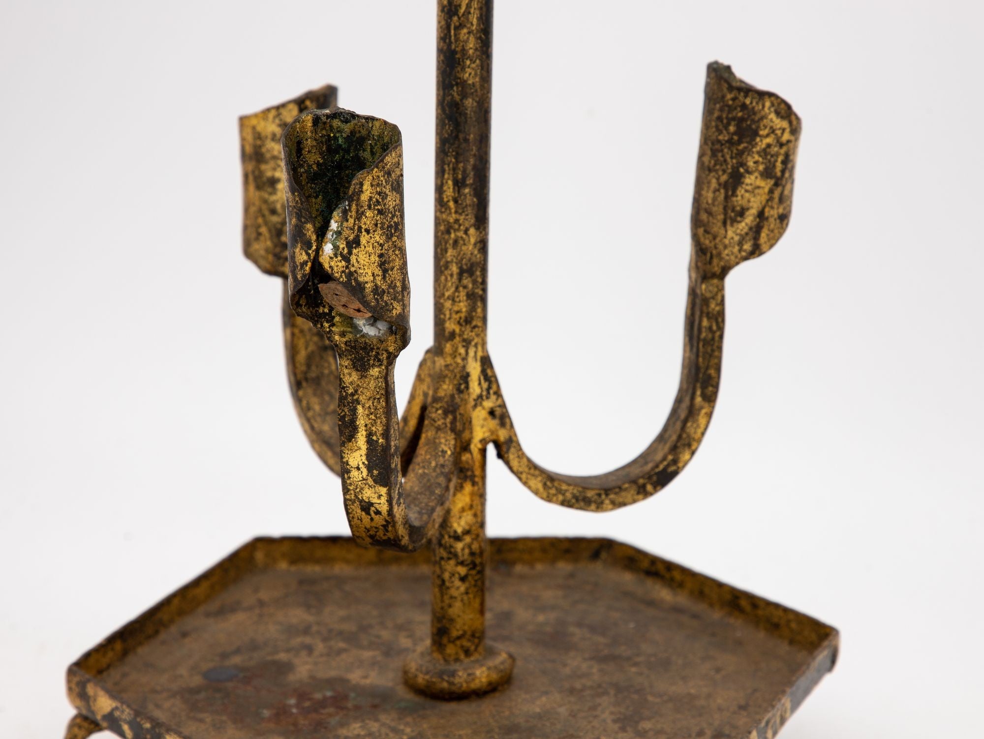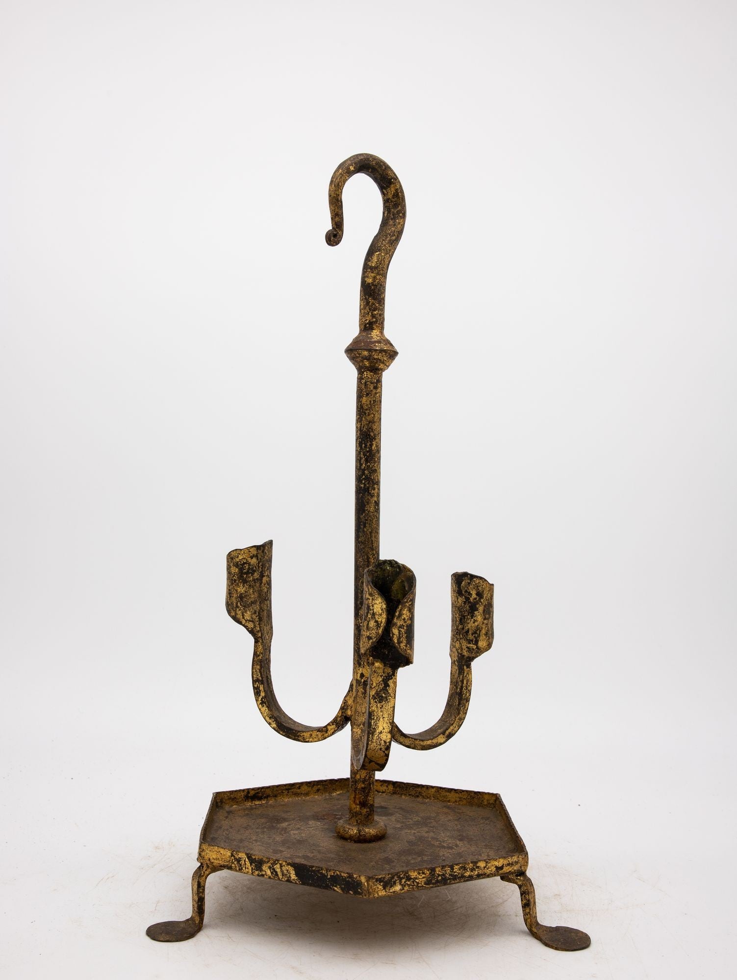 Spanish Gilt Iron Triple Candlestick or Stand, 1950s