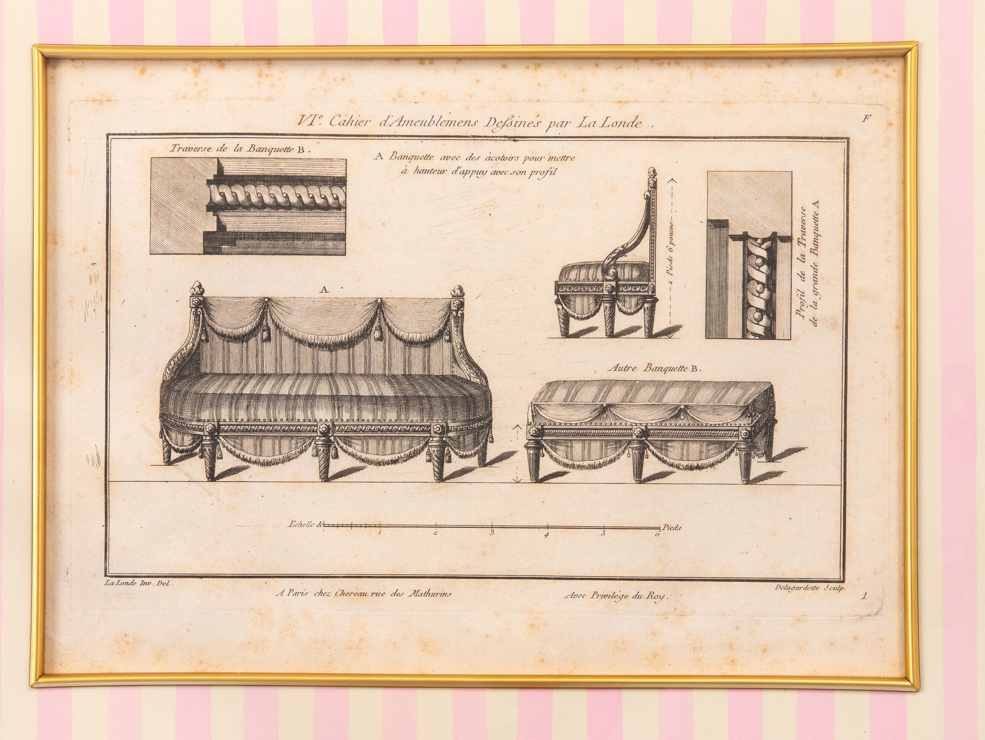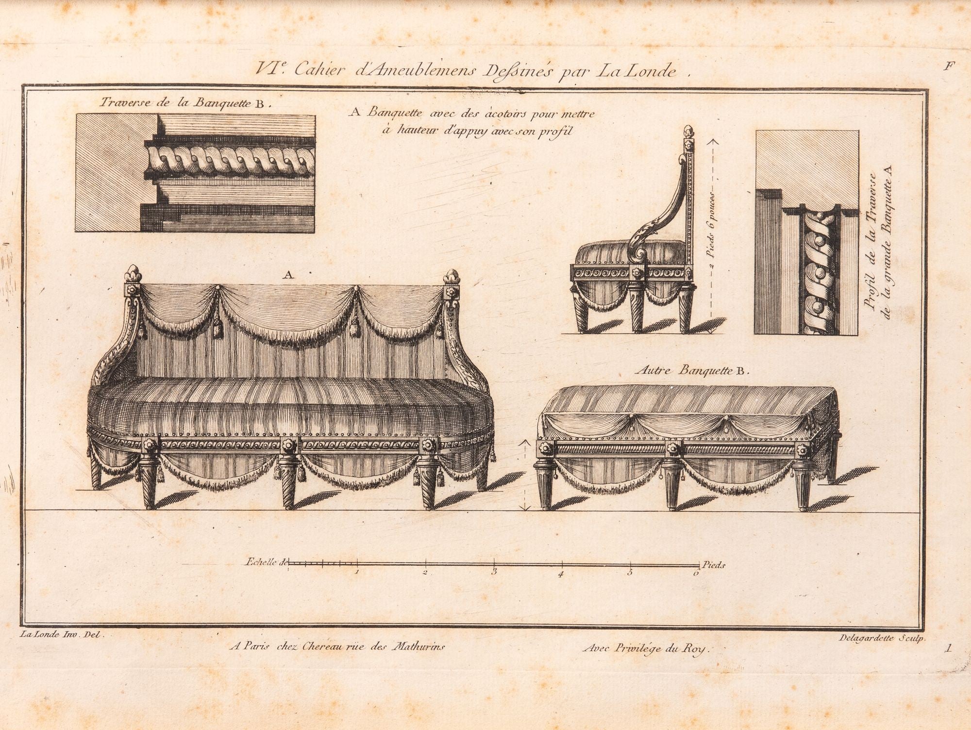 Bench with Arm Rests, 1780-96, Reproduction Print C. 2005