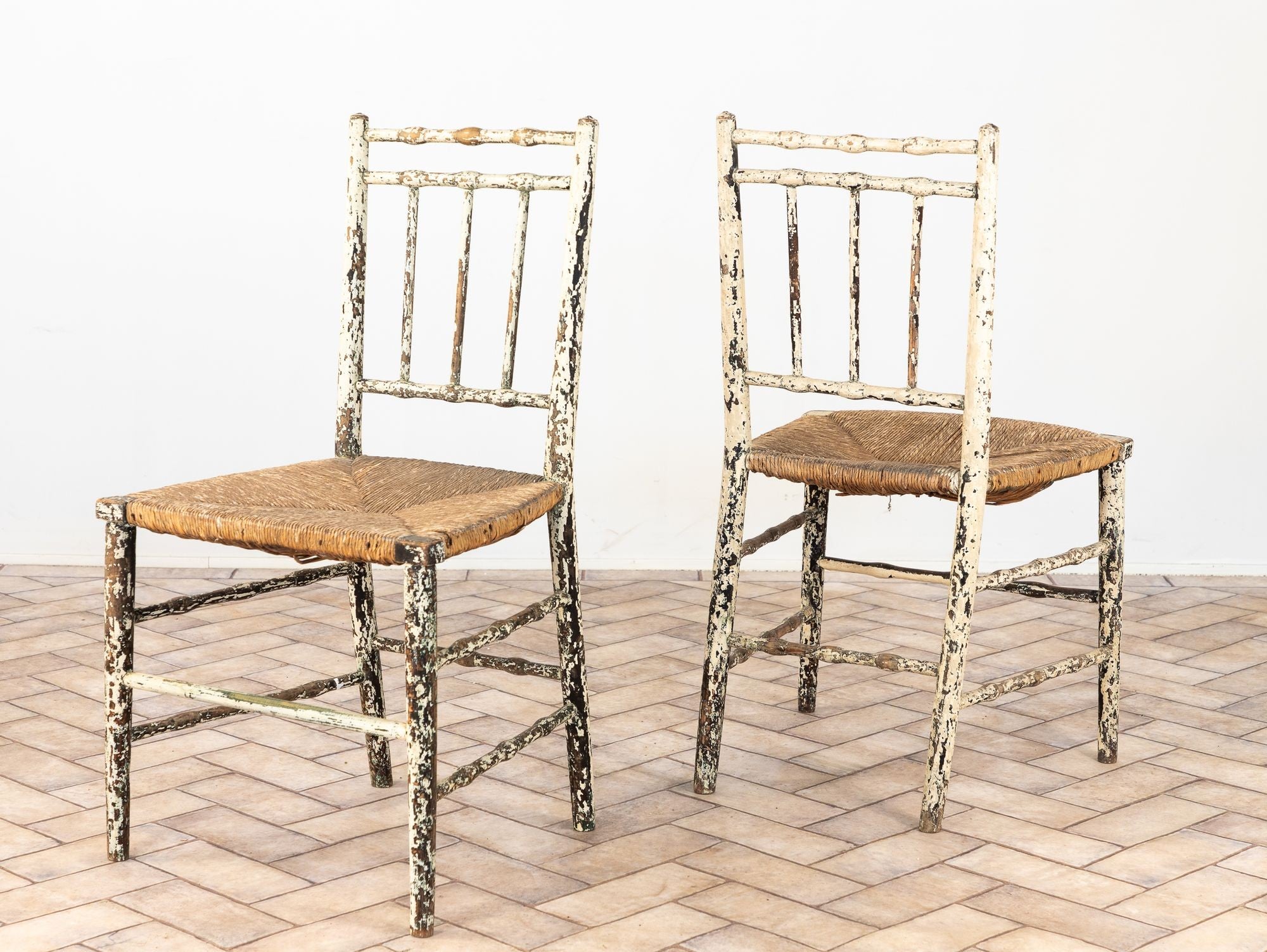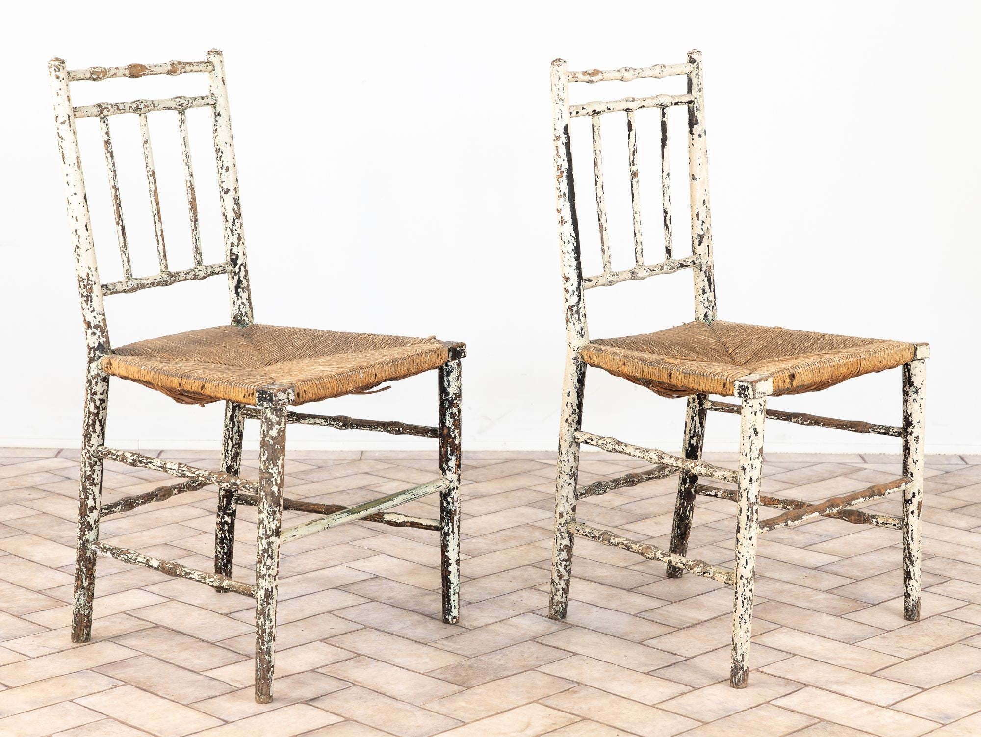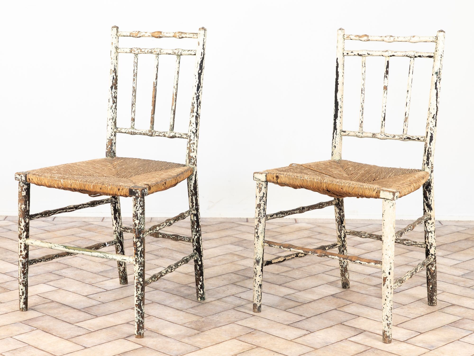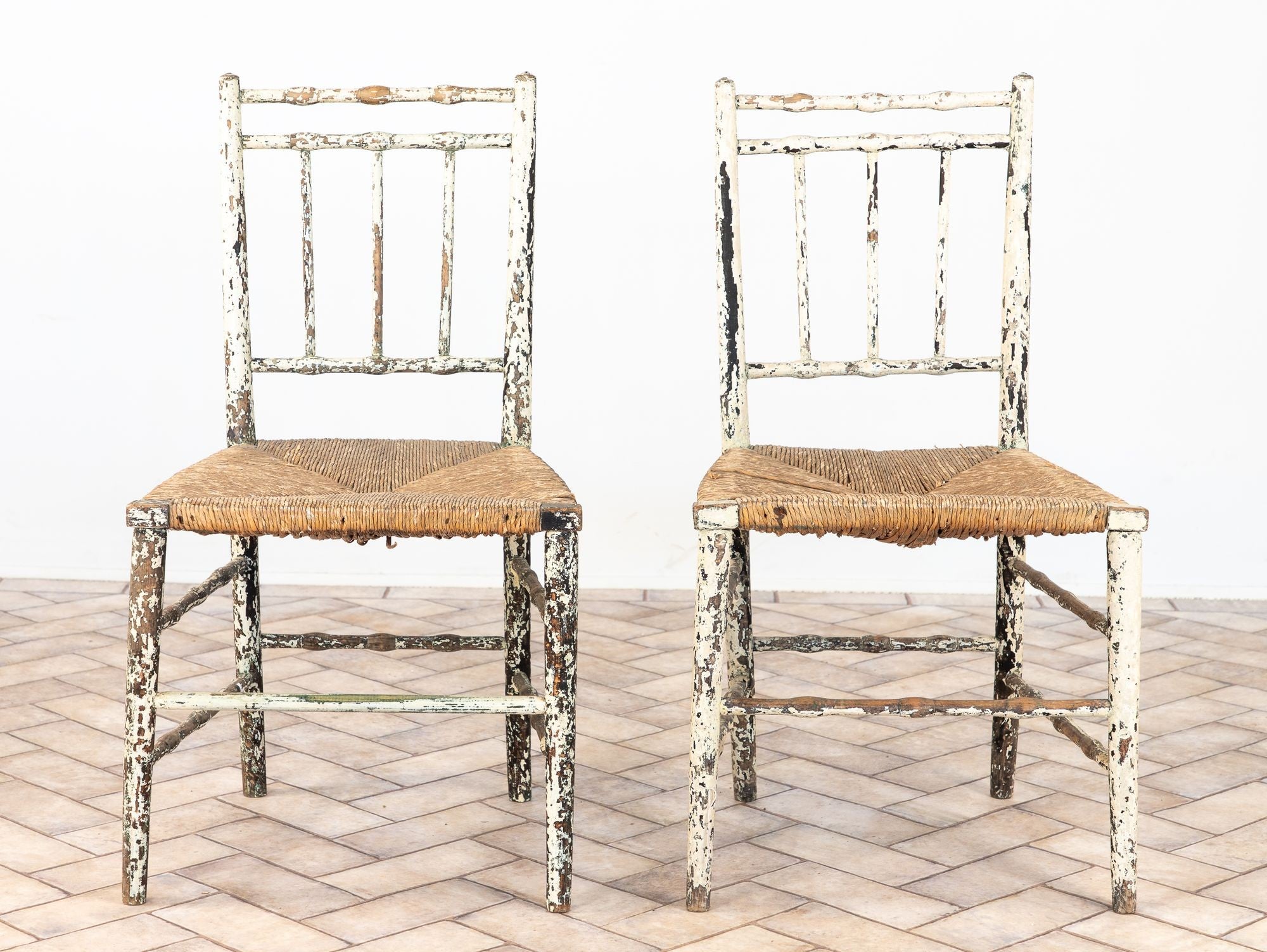 Pair Antique Rush Seat Dining Chairs, England 1920s